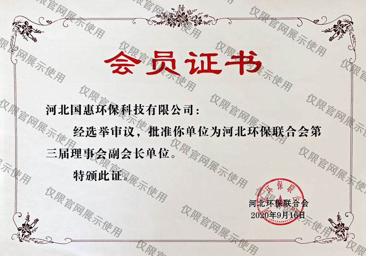 河北環保聯合會會員單位證書