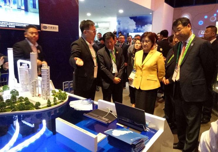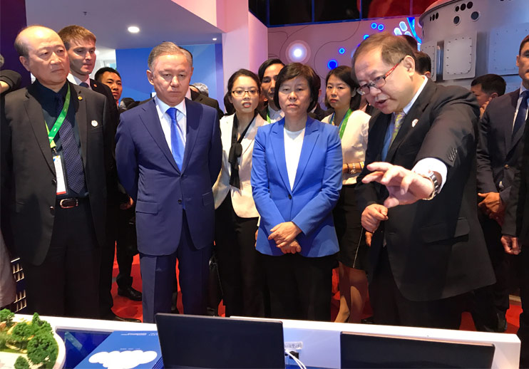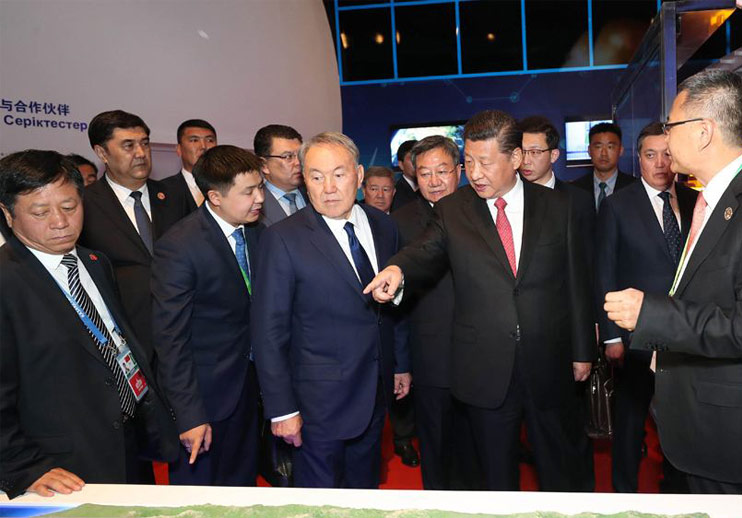 中國國家主席習近平同哈薩克斯坦總統一道參觀阿斯塔世博會中國館